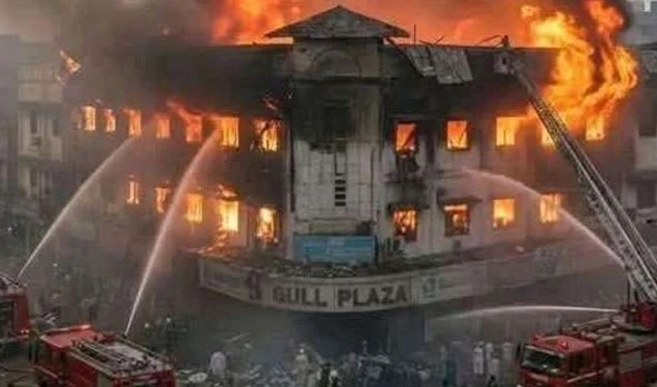 گل پلازہ شاپنگ مال میں ہفتے کی رات بھڑکی آگ میں فائربریگیڈ کی متعدد گاڑیاں بڑی تعداد میں پہنچیں، مگر شدت بڑھنے کے باعث عمارت کے دو حصے گر گئے، اور ریسکیو ٹیموں کے لیے کام مشکل ترین ثابت ہوا۔