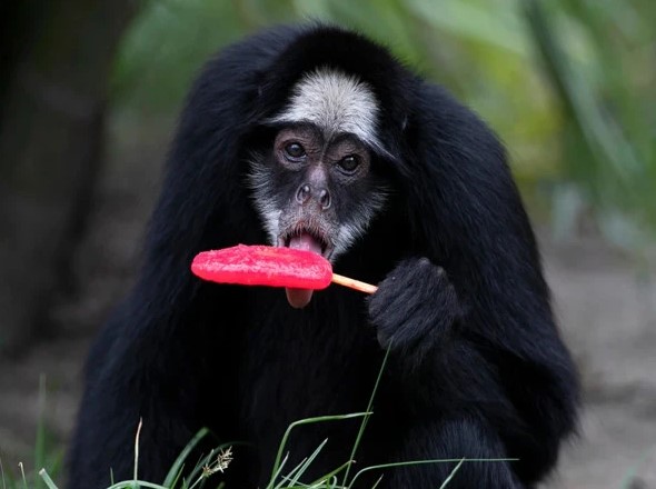 چڑیا گھر میں بندروں کے ایک گروہ کو تربوز سے بنے پاپسیکلز دیے گئے، جنہیں انہوں نے شوق سے کھایا، جبکہ ایک تیندوا اپنے پانی کے ٹینک میں تیرتے ہوئے چکن کے پاپسیکلز کو نکالنے کی کوشش کرتا نظر آیا۔